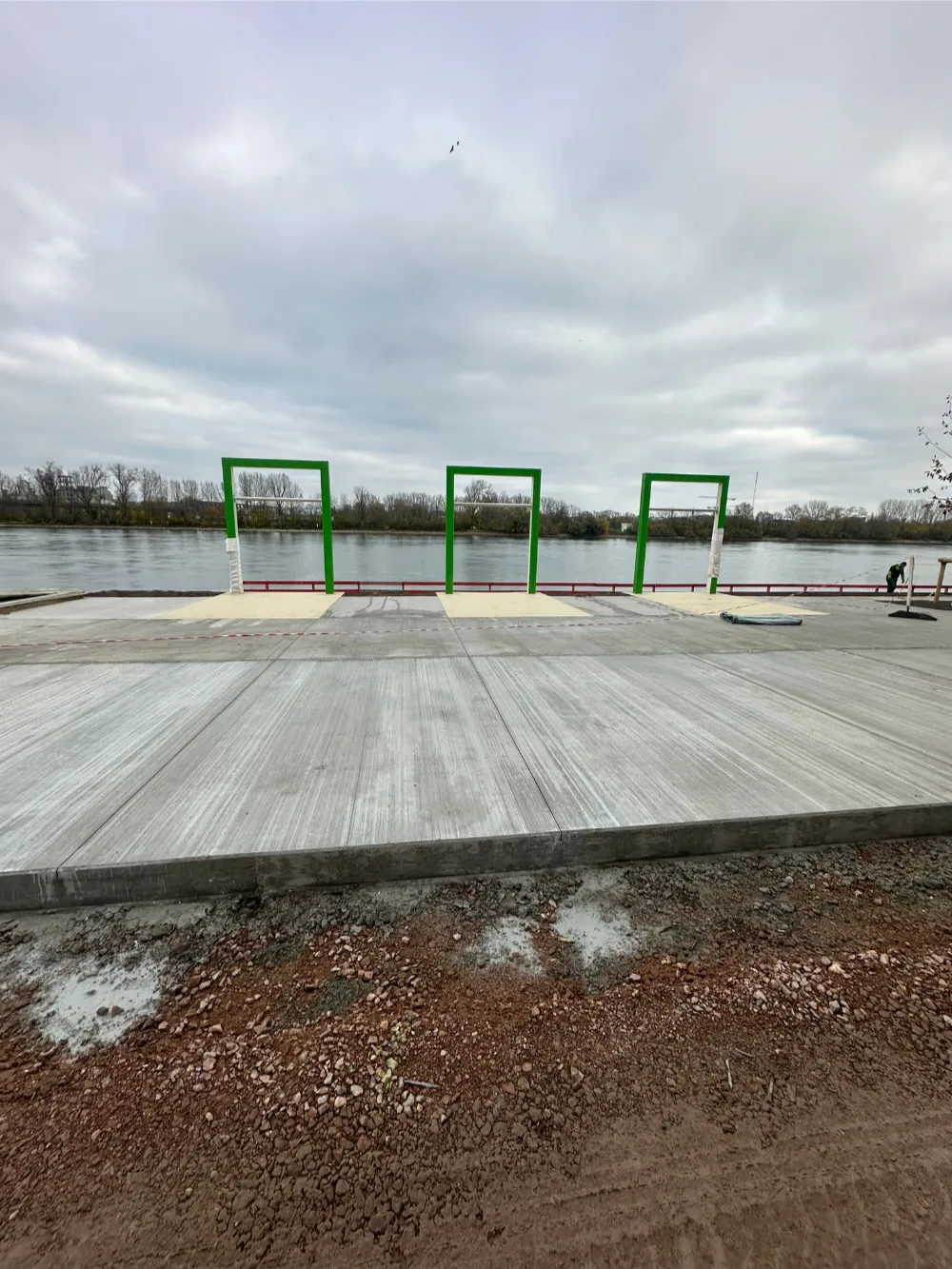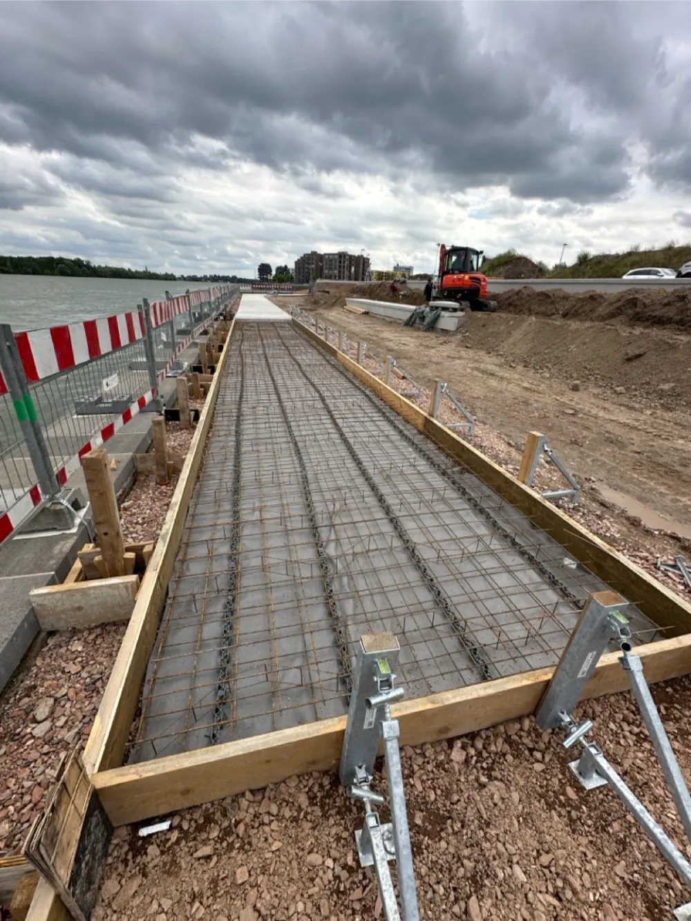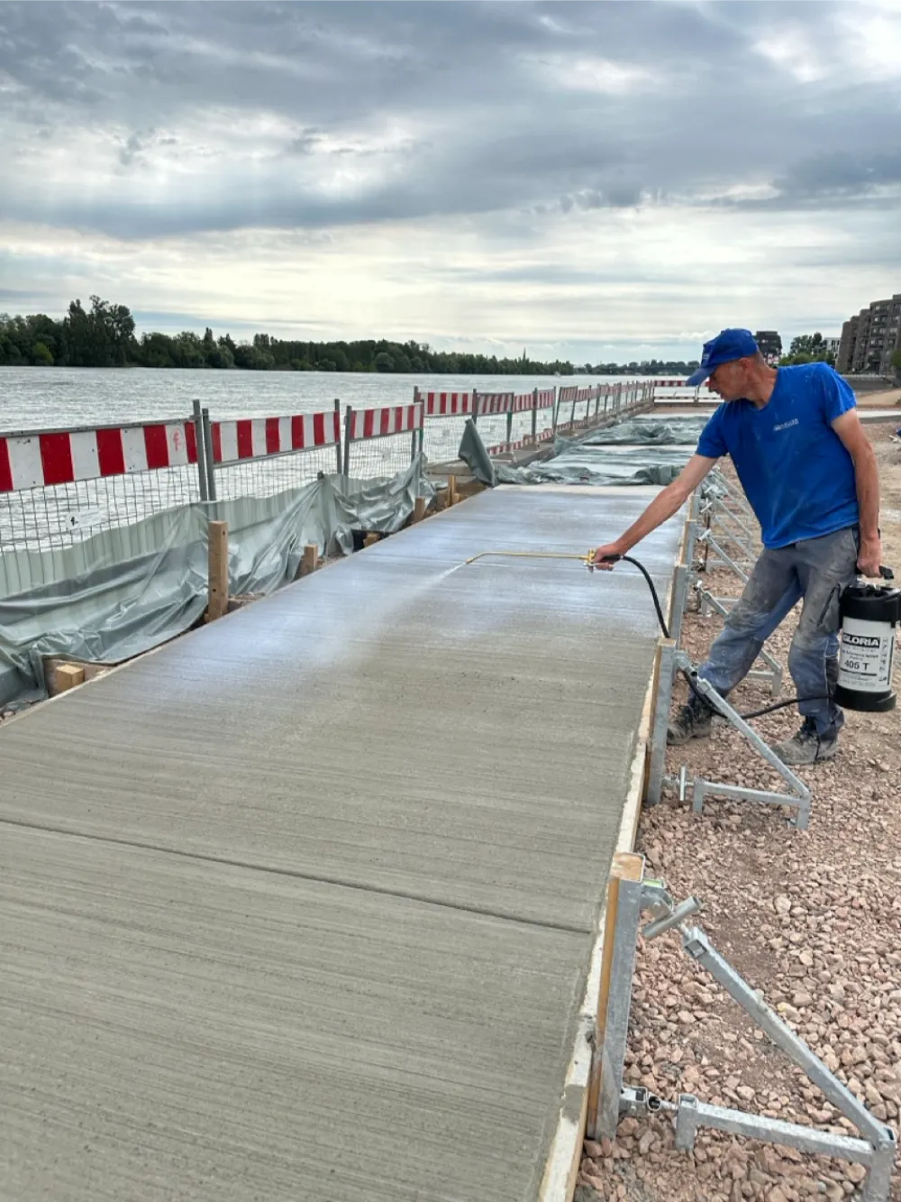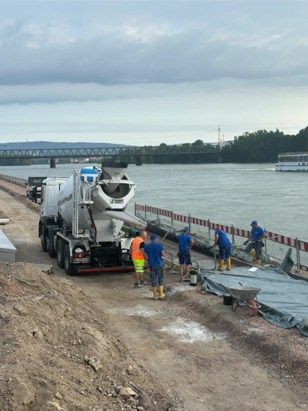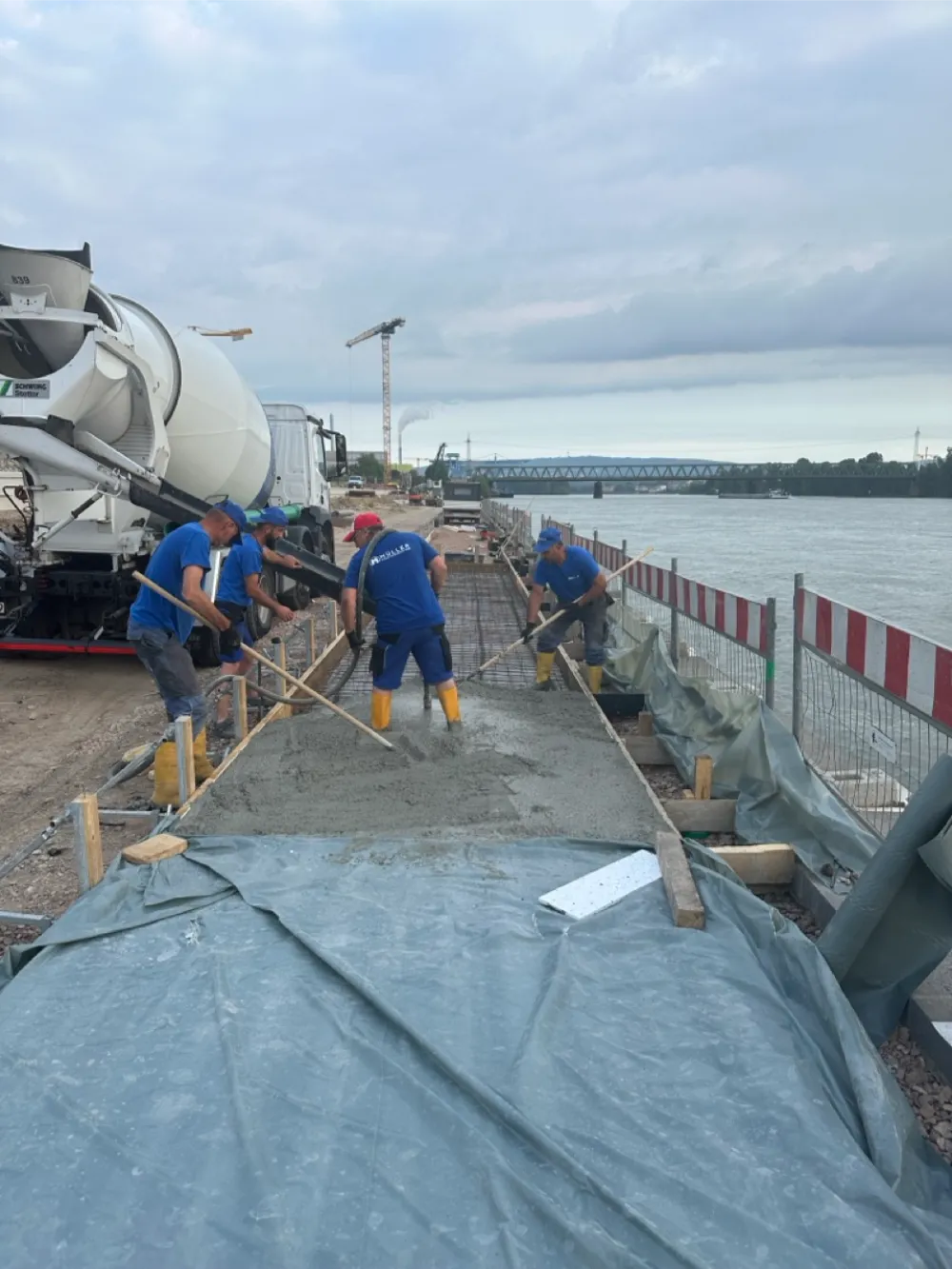 Herstellung neuer Betonwege im Bereich des Rheinufers am Zollhafen in Mainz.